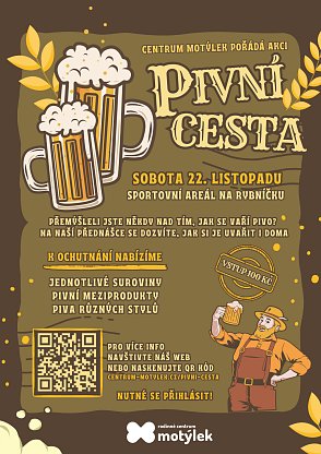 Rodinné centrum Motýlek Vás zve na pivní cestu, která se koná v sobotu 22. listopadu, přijďte ochutnat svět domácího pivovarnictví. Na akci je nutno se přihlásit. Více informací na webu https://www.centrum-motylek.cz/pivni-cesta/